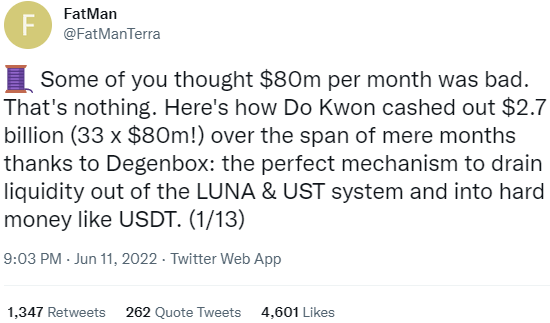 Meanwhile, FatManTerra is highlighting issues with USDD, Tron's stablecoin.